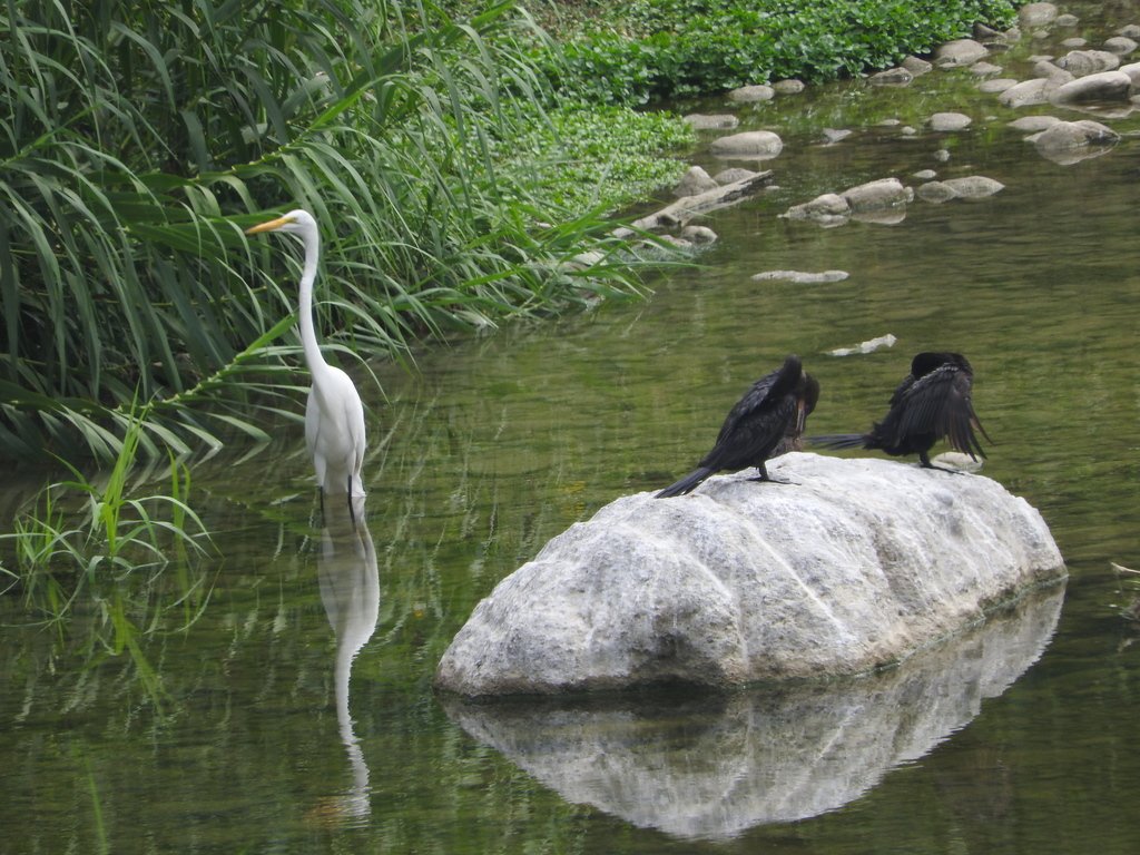 Cormoranes conviviendo con una Garza