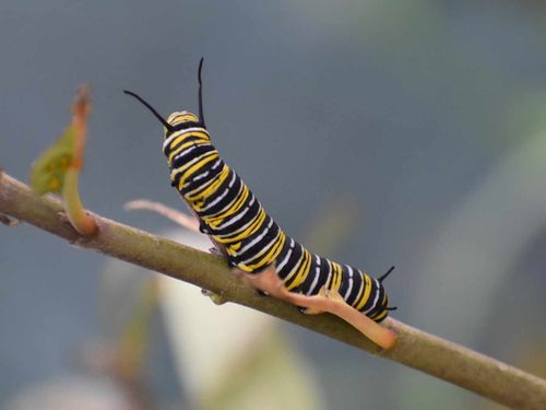 Oruga de Mariposa Monarca con sus distintivas franjas