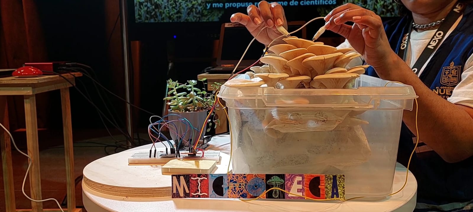 Mar, integrante de Microteca nos responde: “Los hongos y las plantas tienen agua dentro de ellas… eso es energía bioeléctrica, por medio de un arduino y otros componentes, esta energía se pasa de análoga a digital y ya siendo digital, por medio de un sintetizador se interpreta, por eso le podemos poner diferentes sonidos que solamente suenan cuando el sensor está en contacto con la planta, el hongo o cualquier ente que tenga agua”