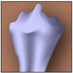 Cuerpo fructífero seco con forma de "labio" u ojo cerrado.