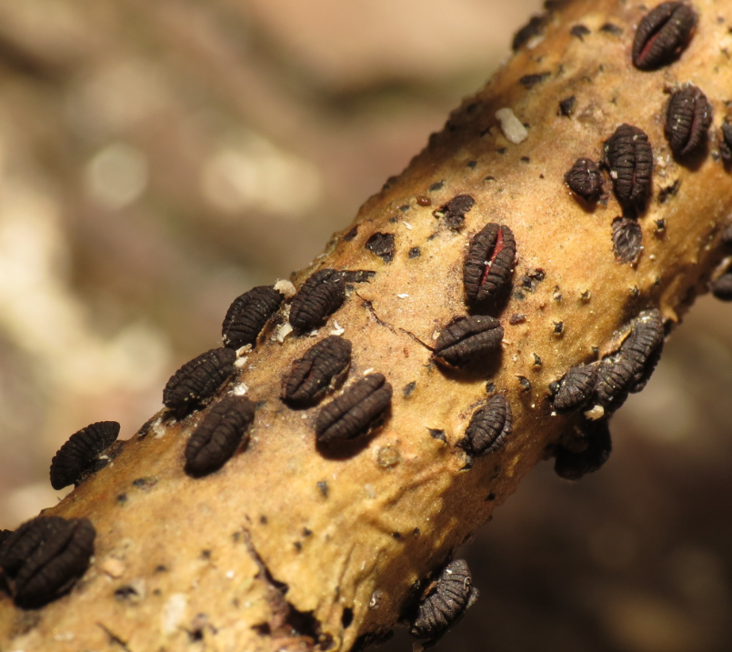 La especie Rhytidhysteron rufulum, tiene la capacidad de desarrollarse en una amplia variedad de plantas hospederas, incluyendo especies pertenecientes a las familias Boraginaceae, Cannabaceae, Fabaceae, Nyctaginaceae y Rutaceae.